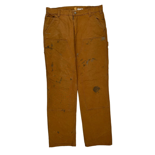 Original Dungaree Fit Carhartt Double Knee Carpenter Trousers - 38W 32L Brown Cotton