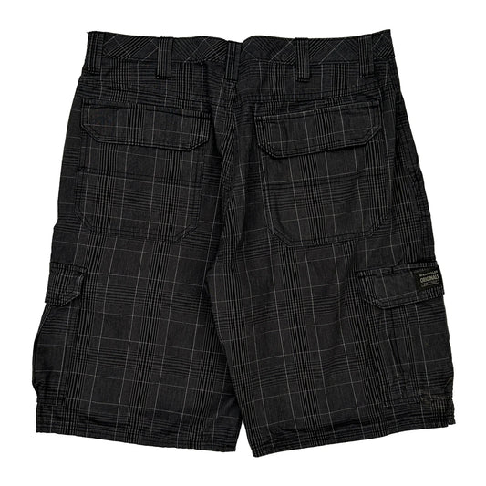 Wrangler Checked Cargo Shorts - 34W 10L Black Cotton