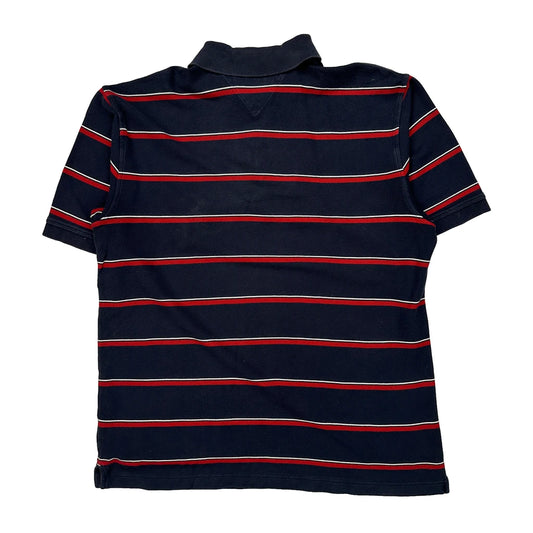 Tommy Hilfiger Striped Polo Shirt - Large Navy Cotton