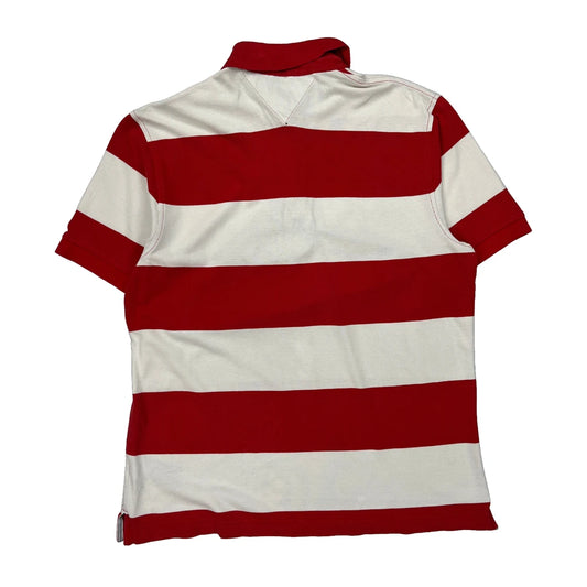 Tommy Hilfiger Striped Polo Shirt - Medium Red Cotton