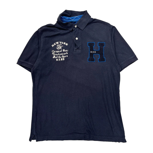 Tommy Hilfiger Spellout Polo Shirt - Large Navy Cotton