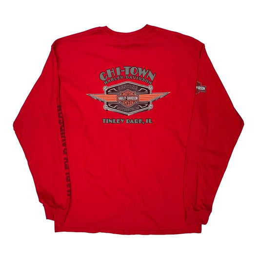 Chi-Town Hanes Harley Davidson Graphic Long Sleeve T-Shirt - XL Red Cotton