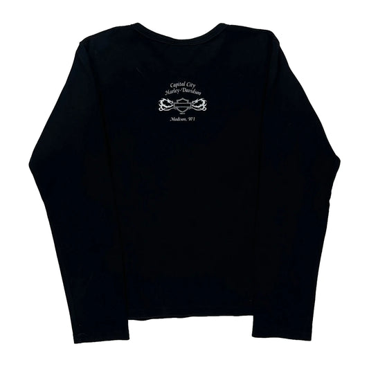 Harley Davidson Graphic Long Sleeve T-Shirt - Large Black Cotton
