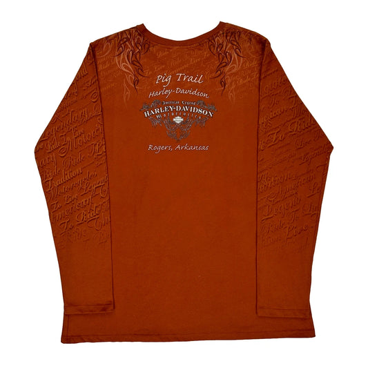 Pig Trail Harley Davidson Long Sleeve T-Shirt - 2XL Orange Cotton