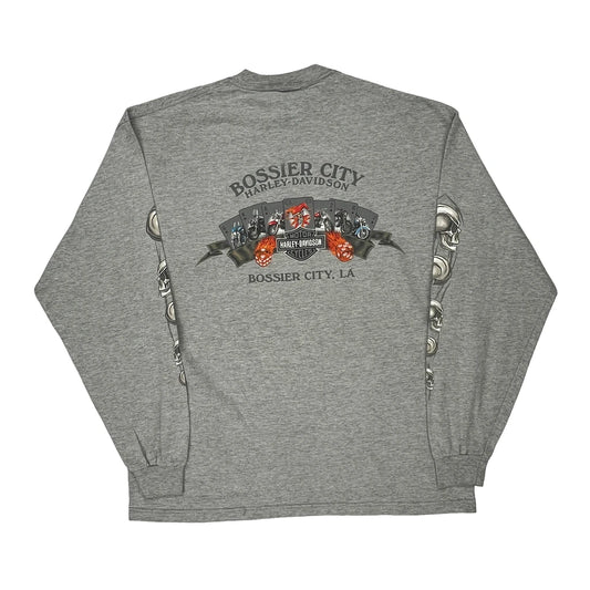 Bossier City Harley Davidson Graphic Long Sleeve T-Shirt - XL Grey Cotton Blend