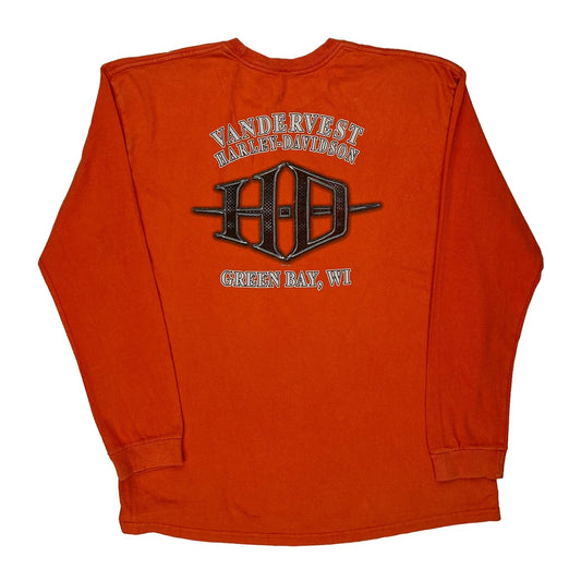 Vandervest Harley Davidson Graphic Long Sleeve T-Shirt - XL Orange Cotton