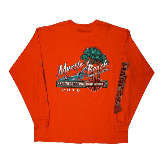 Harley Davidson Graphic Long Sleeve T-Shirt - XL Orange Cotton