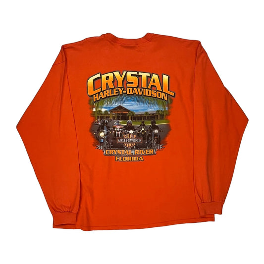 Crystal River Florida Harley Davidson Long Sleeve T-Shirt - 2XL Orange Cotton