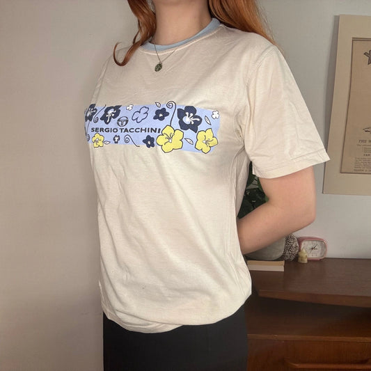 Sergio Tacchini Floral T-Shirt - Large White Cotton