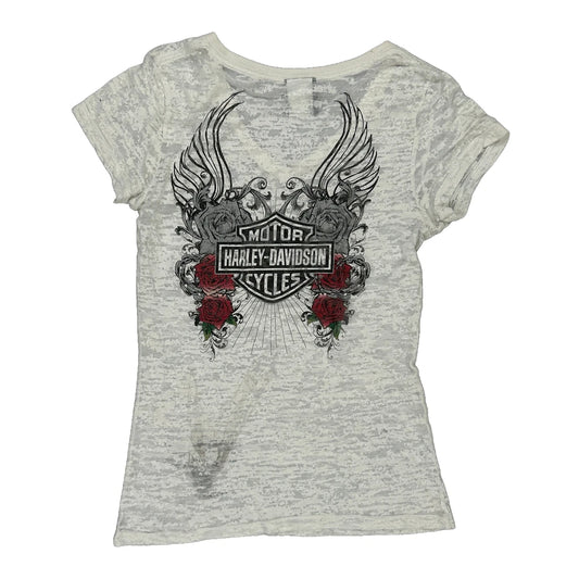 Harley Davidson Graphic T-Shirt - Medium White Cotton