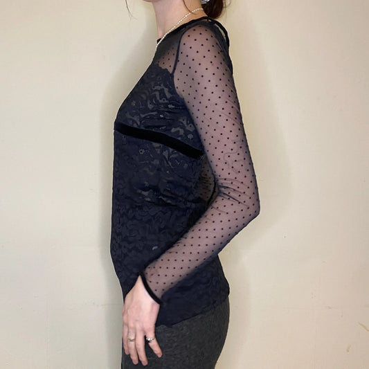 Intimissimi Lace Mesh Top - Small Black Polyester Blend