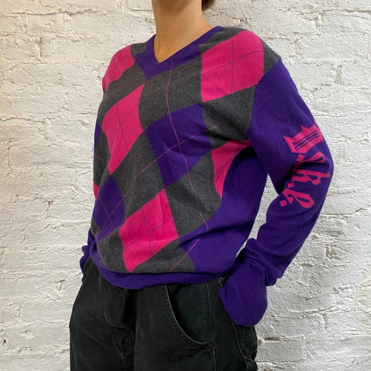 Duke Argyle Jumper - Large Multicoloured Wool Blend