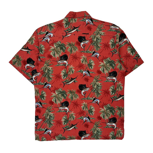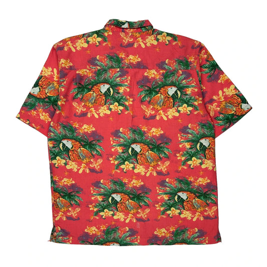 Guy Harvery Graphic Hawaiian Shirt - Medium Red Cotton Blend