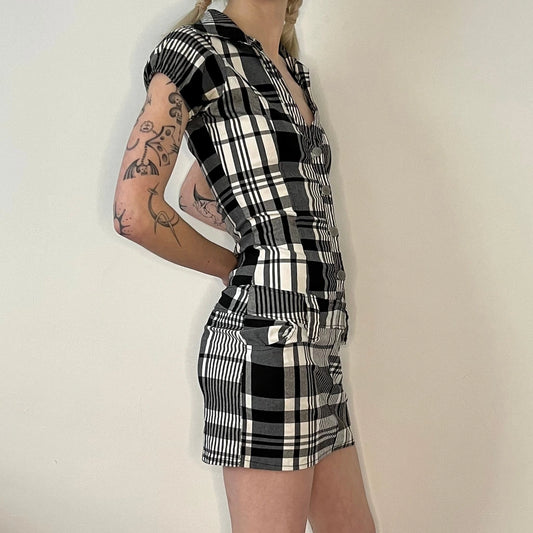 Unbranded Checked Mini Dress - XS Black & White Cotton Blend