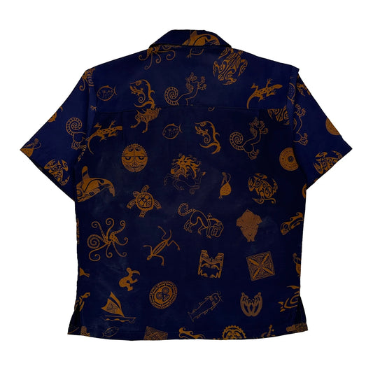 Via Ripatti Designs Hawaiian Shirt - Large Blue Cotton