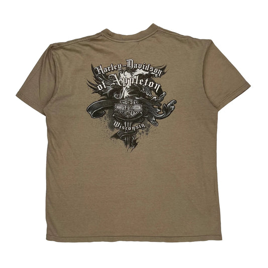 Harley Davidson Graphic T-Shirt - Large Brown Cotton