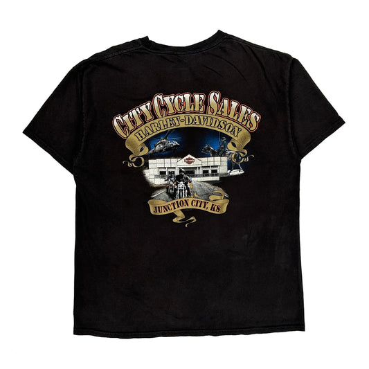 City Cycle Sales Junction City, Ks Harley Davidson Graphic T-Shirt - Large Black Cotton