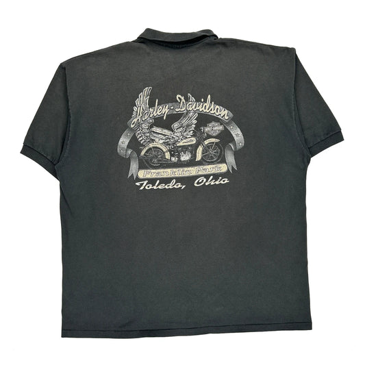 Franklin Park Toledo, Ohio Harley Davidson Graphic Polo Shirt - 3XL Black Cotton