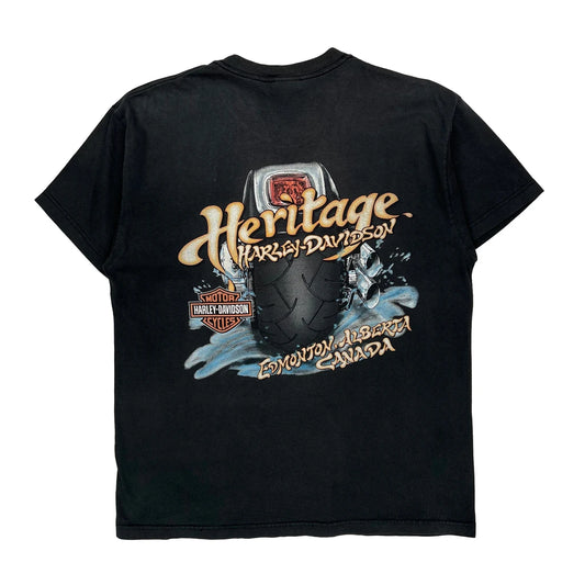 Edmonton, Alberta, Canada Harley Davidson Graphic T-Shirt - Large Black Cotton