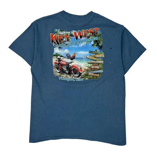 Harley Davidson Graphic T-Shirt - Large Blue Cotton