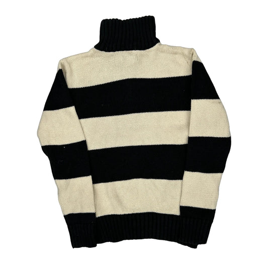 Age 6-7 Polo By Ralph Lauren Striped 1/4 Zip - Small Black & White Cotton