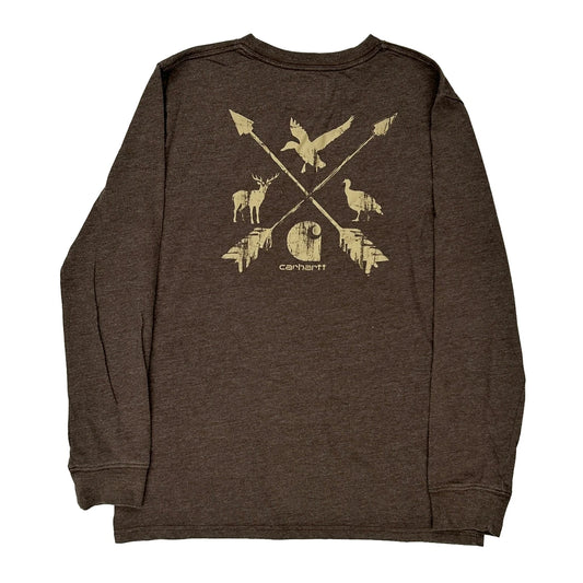 Age 14-16 Carhartt Graphic Long Sleeve T-Shirt - Large Brown Cotton