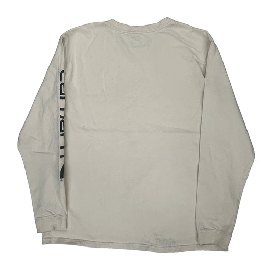Age 12-14 Carhartt Spellout Long Sleeve T-Shirt - Large Cream Cotton