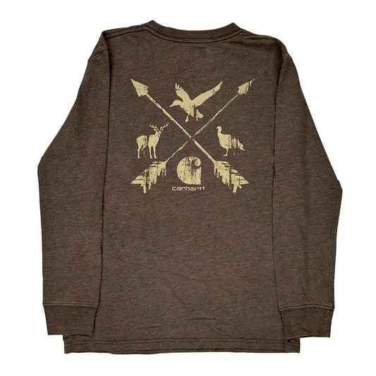 Age 10-12 Carhartt Graphic Long Sleeve T-Shirt - Medium Brown Cotton