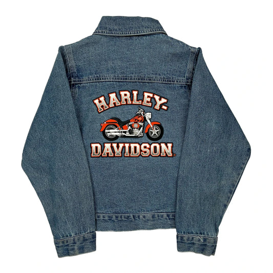 Age 10 Harley Davidson Graphic Denim Jacket - Medium Blue Cotton