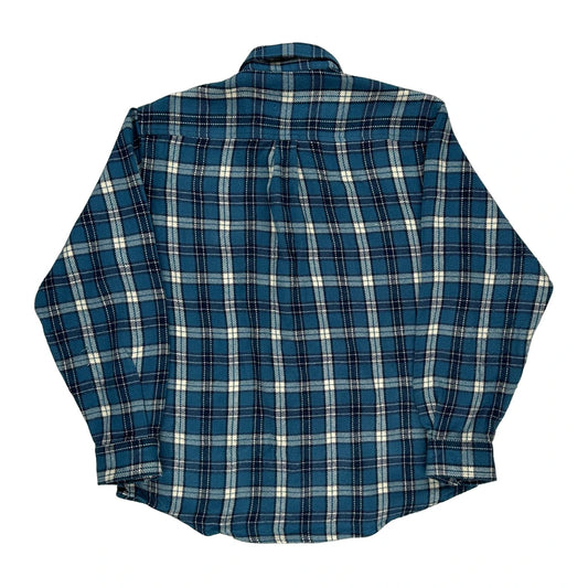 Aqua Blues Checked Flannel Shirt - Large Blue Cotton