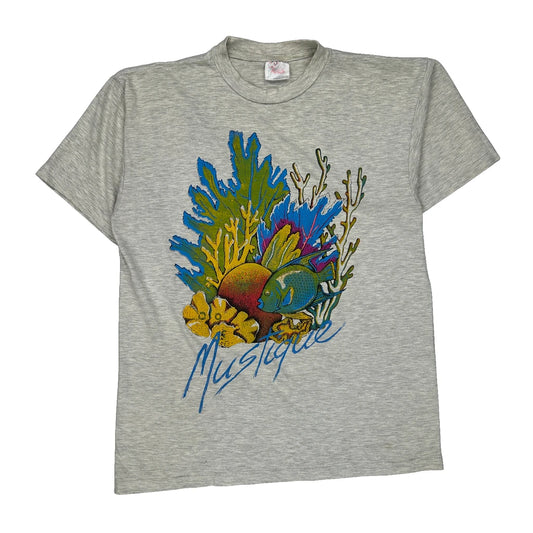Made In USA Single Stitch Magic Tees Graphic T-Shirt - Large Grey Cotton