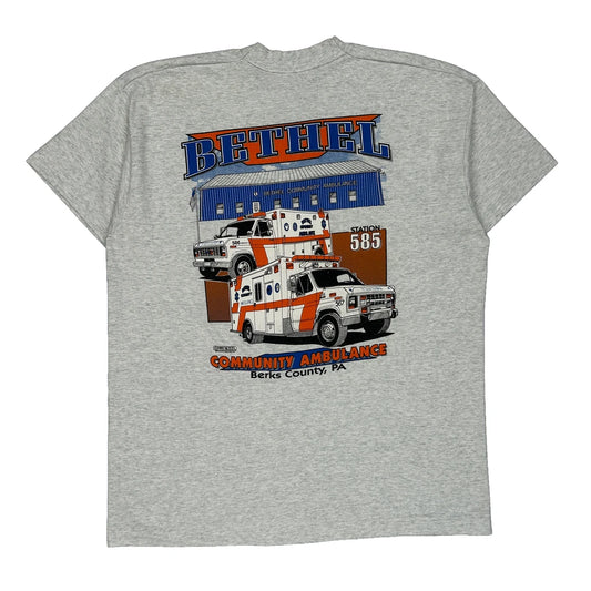 Made In USA Single Stitch Community Ambulance Fruit Of The Loom Graphic T-Shirt - XL Grey Cotton