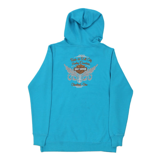 Cleveland, Ohio Harley Davidson Graphic Hoodie - Medium Blue Cotton Blend
