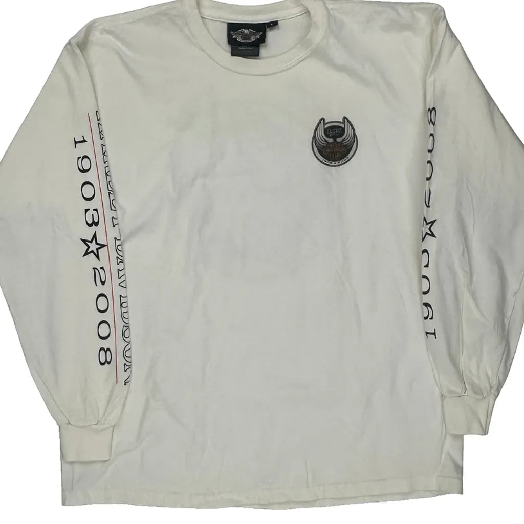 105Th Anniversary Harley Davidson Graphic Long Sleeve T-Shirt - Large Cream Cotton