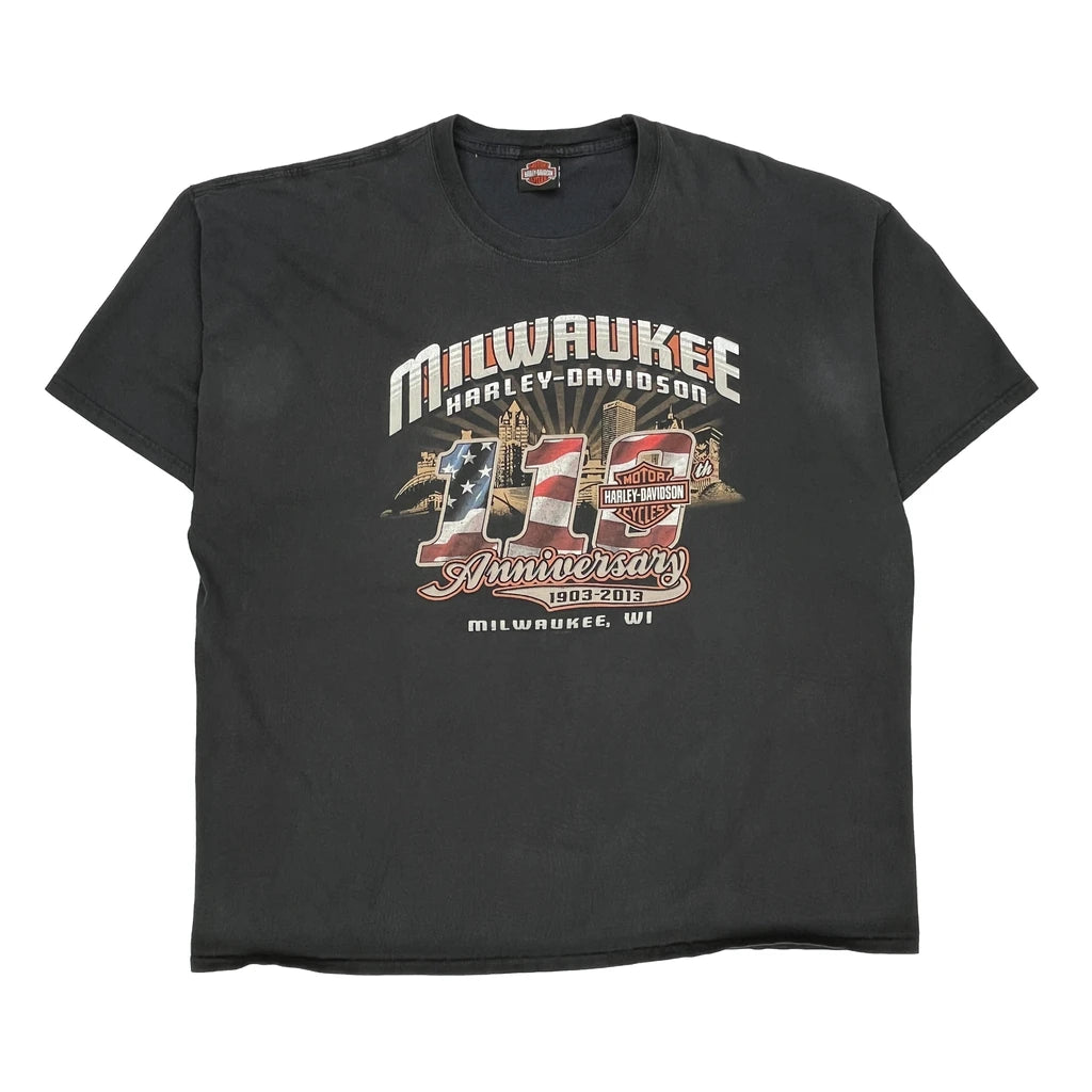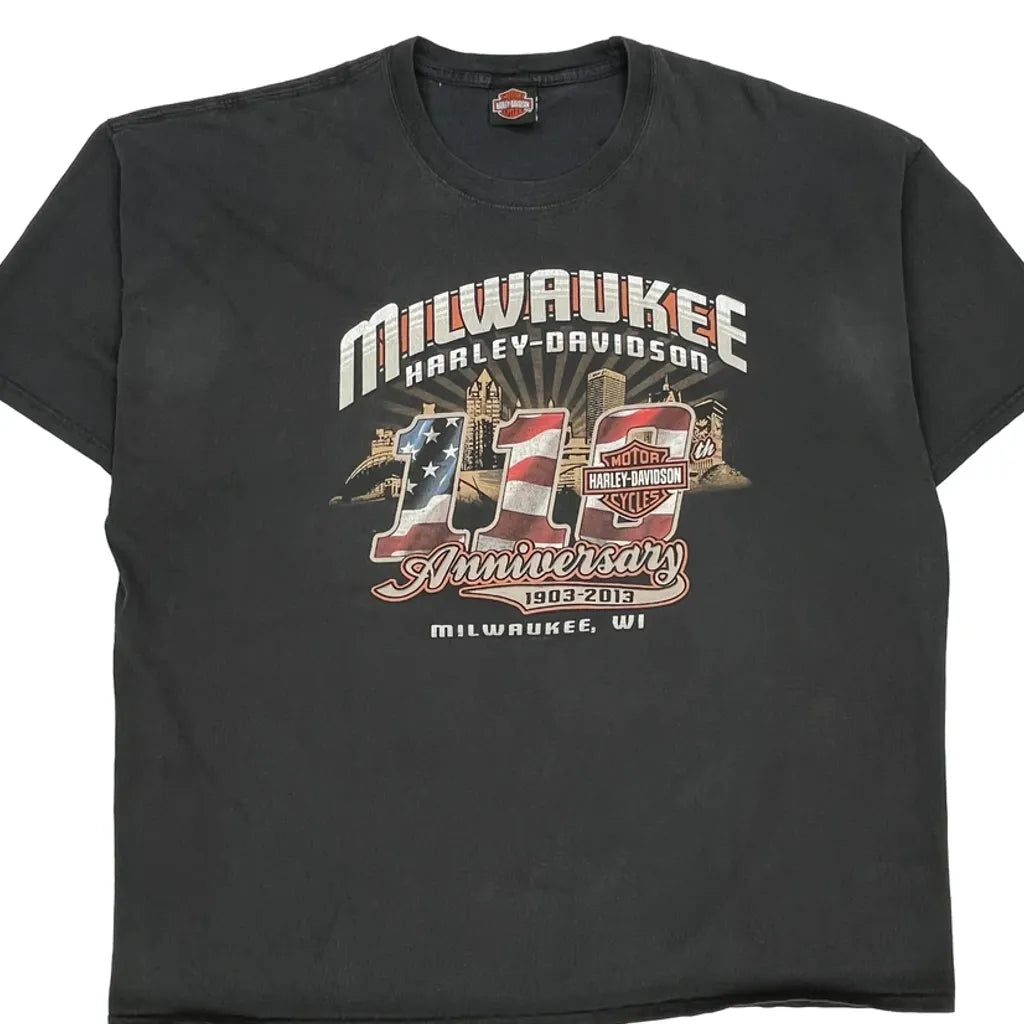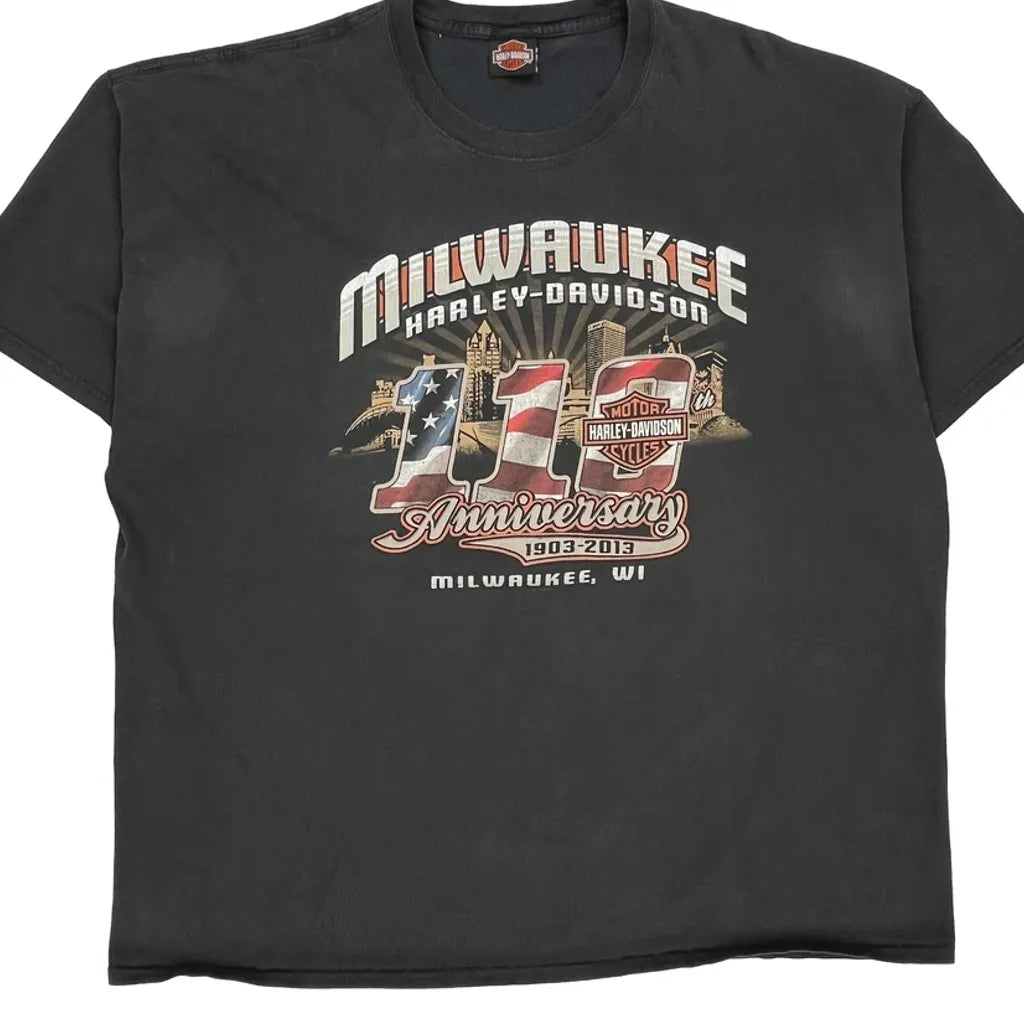 115Th Anniversary Harley Davidson Graphic T-Shirt - 3XL Black Cotton