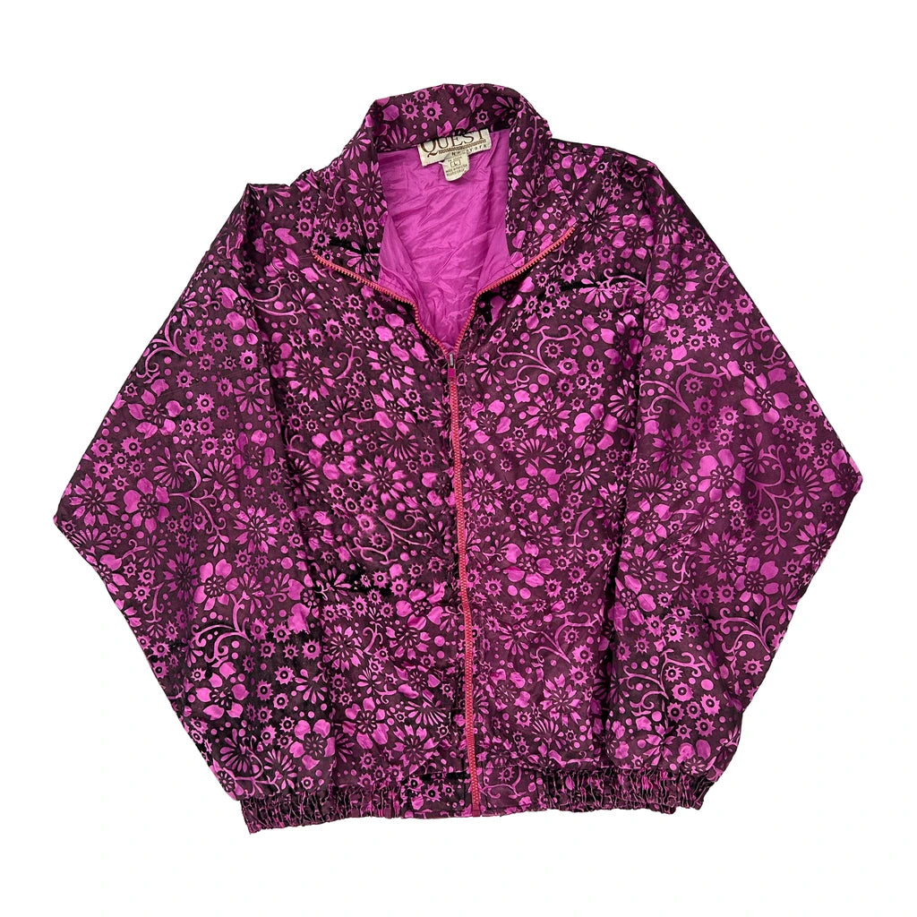 1980'S Quest Floral Shell Jacket - Large Purple Polyester