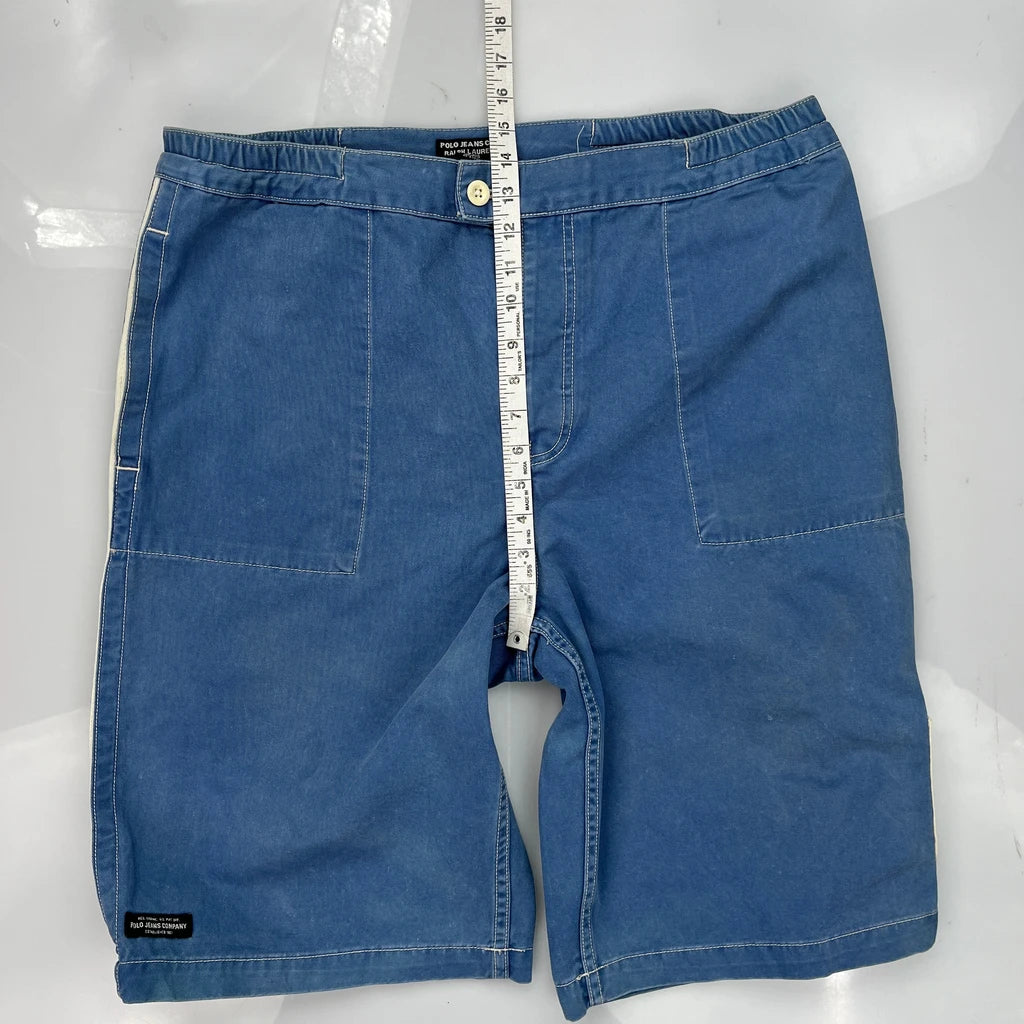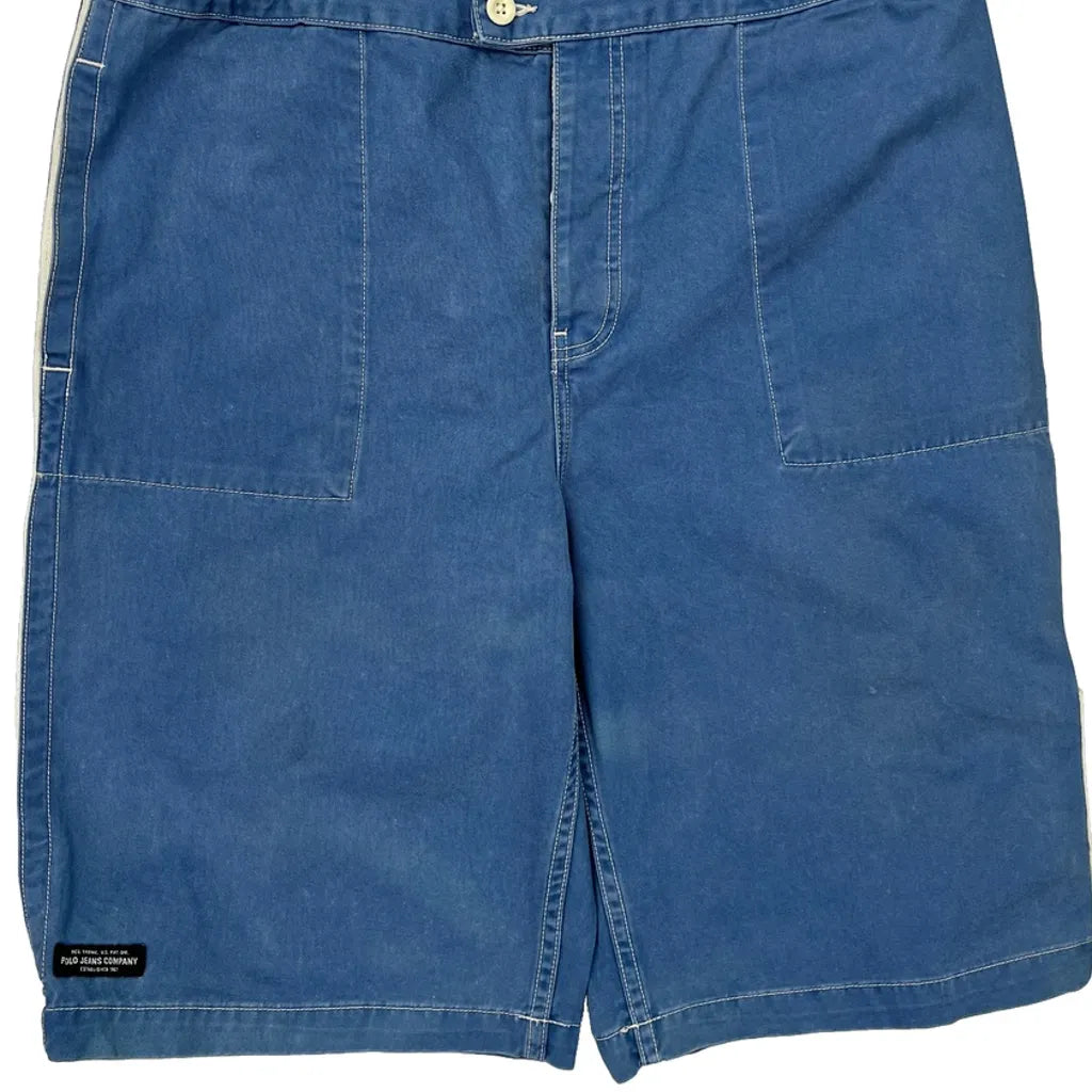 67 Patch Polo By Ralph Lauren Graphic Denim Shorts - 34W 10L Blue Cotton