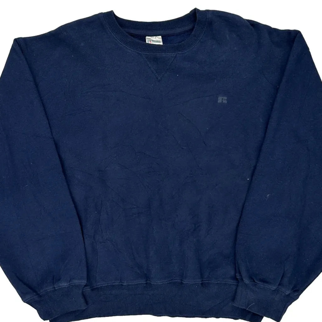 90S Blank Russell Athletic Sweatshirt - Medium Navy Cotton
