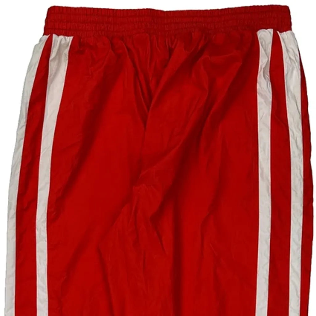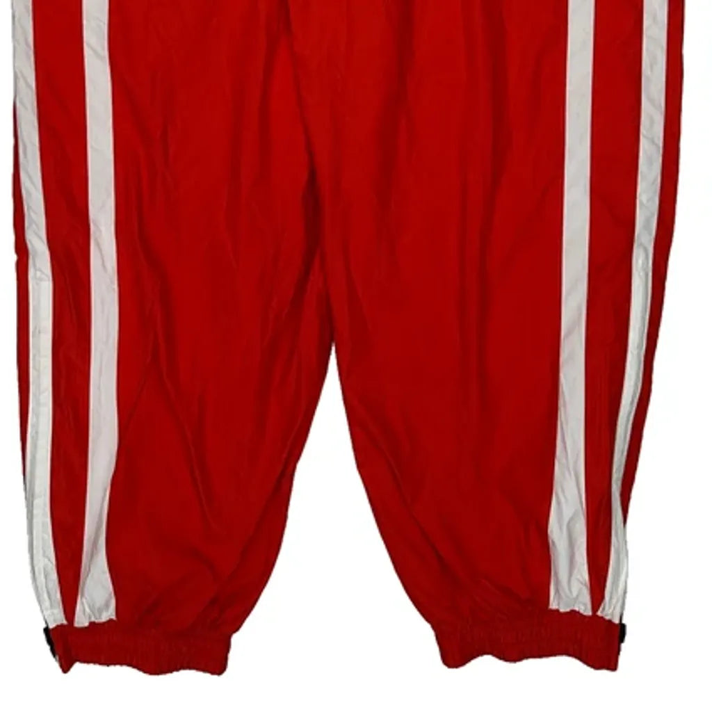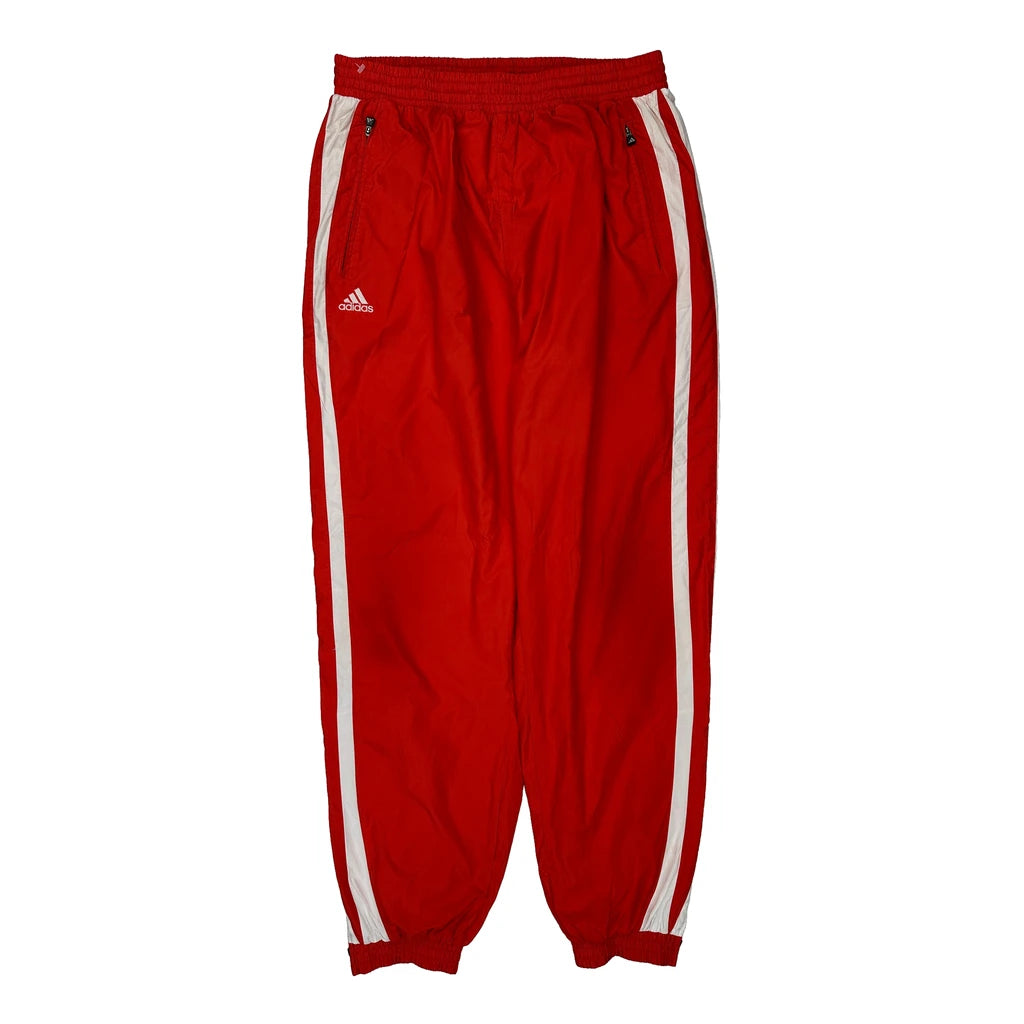 Red Adidas Tracksuit Bottoms With White Stripes.