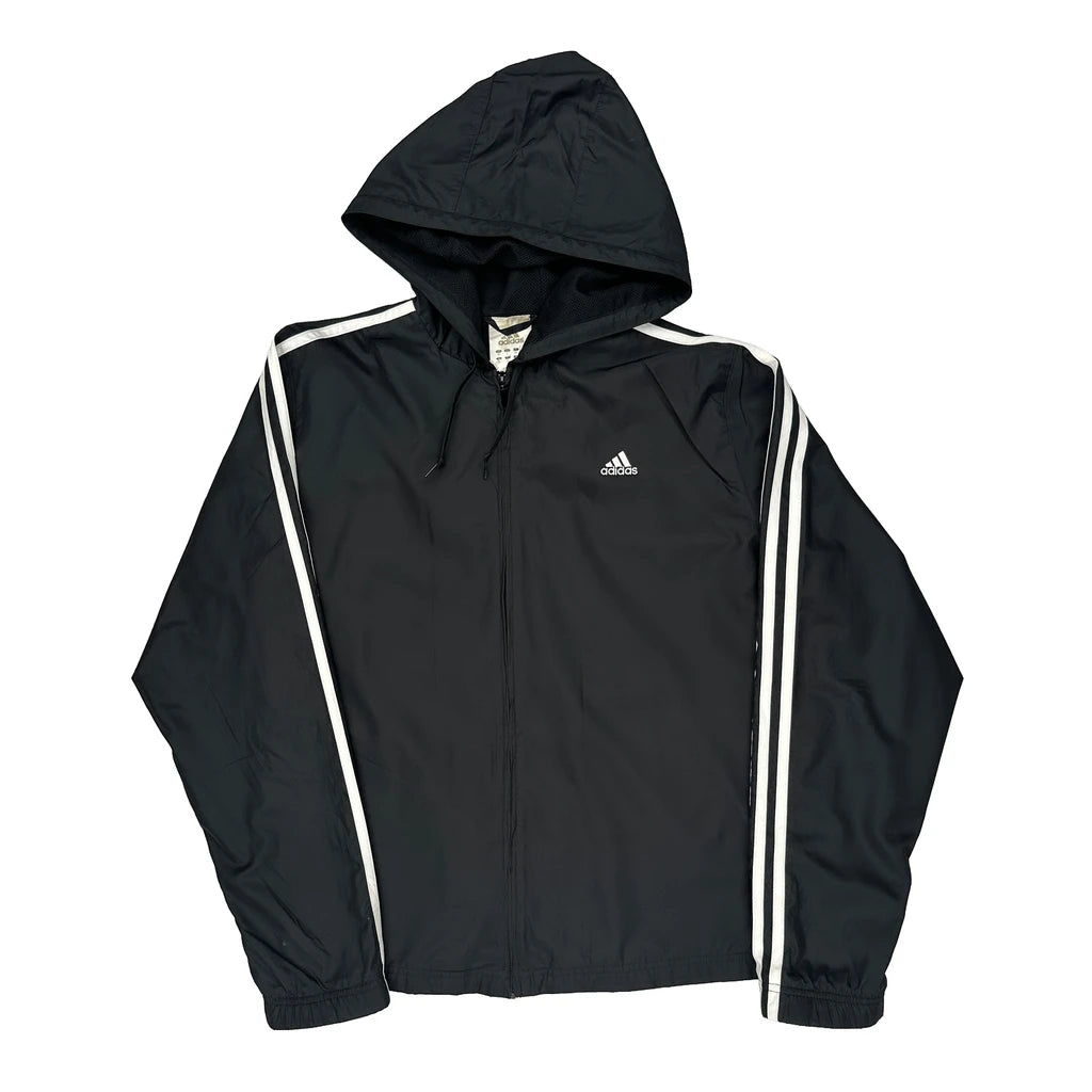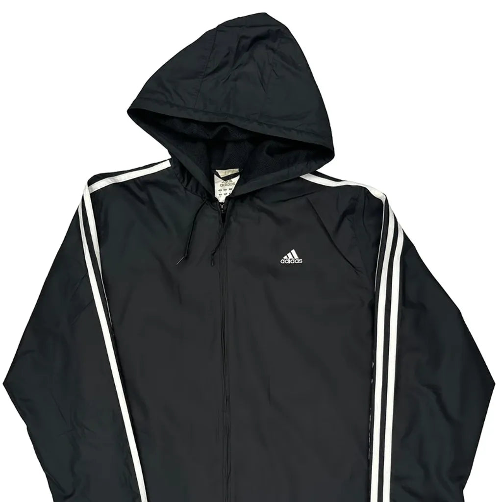 Adidas Striped Windbreaker - Large Black Polyester