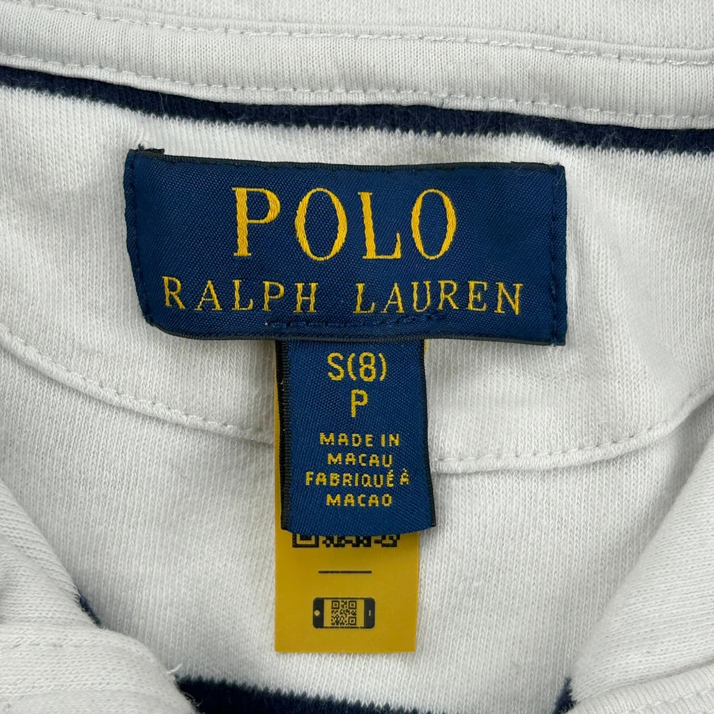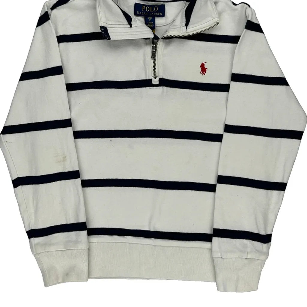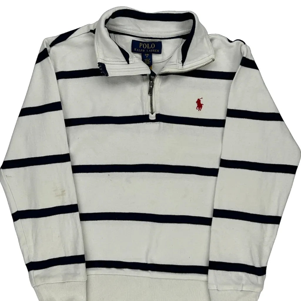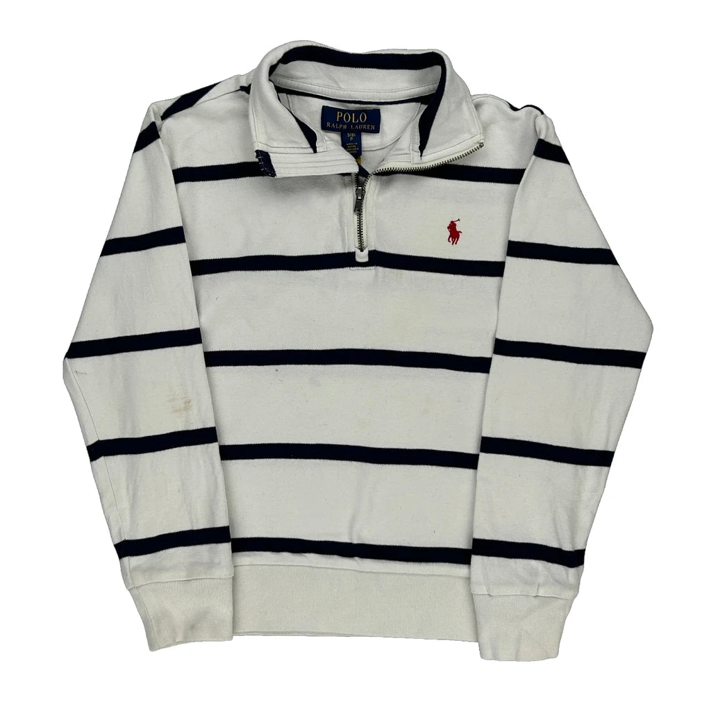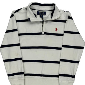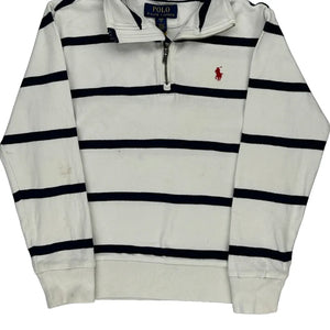 Age 8 Ralph Lauren Striped 1/4 Zip - Small White Cotton