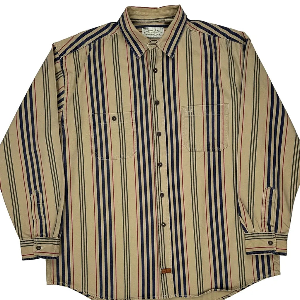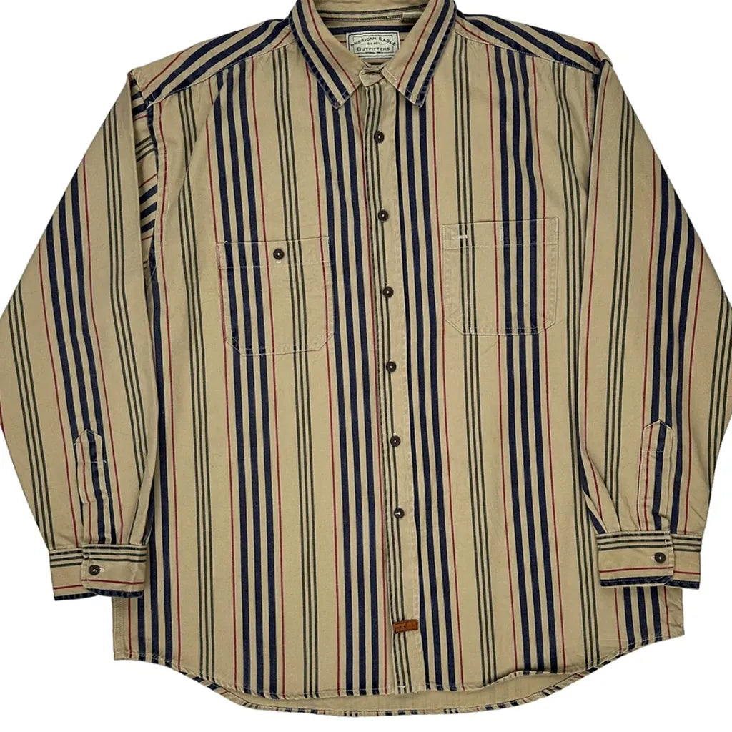 American Eagle Striped Shirt - XL Beige Cotton