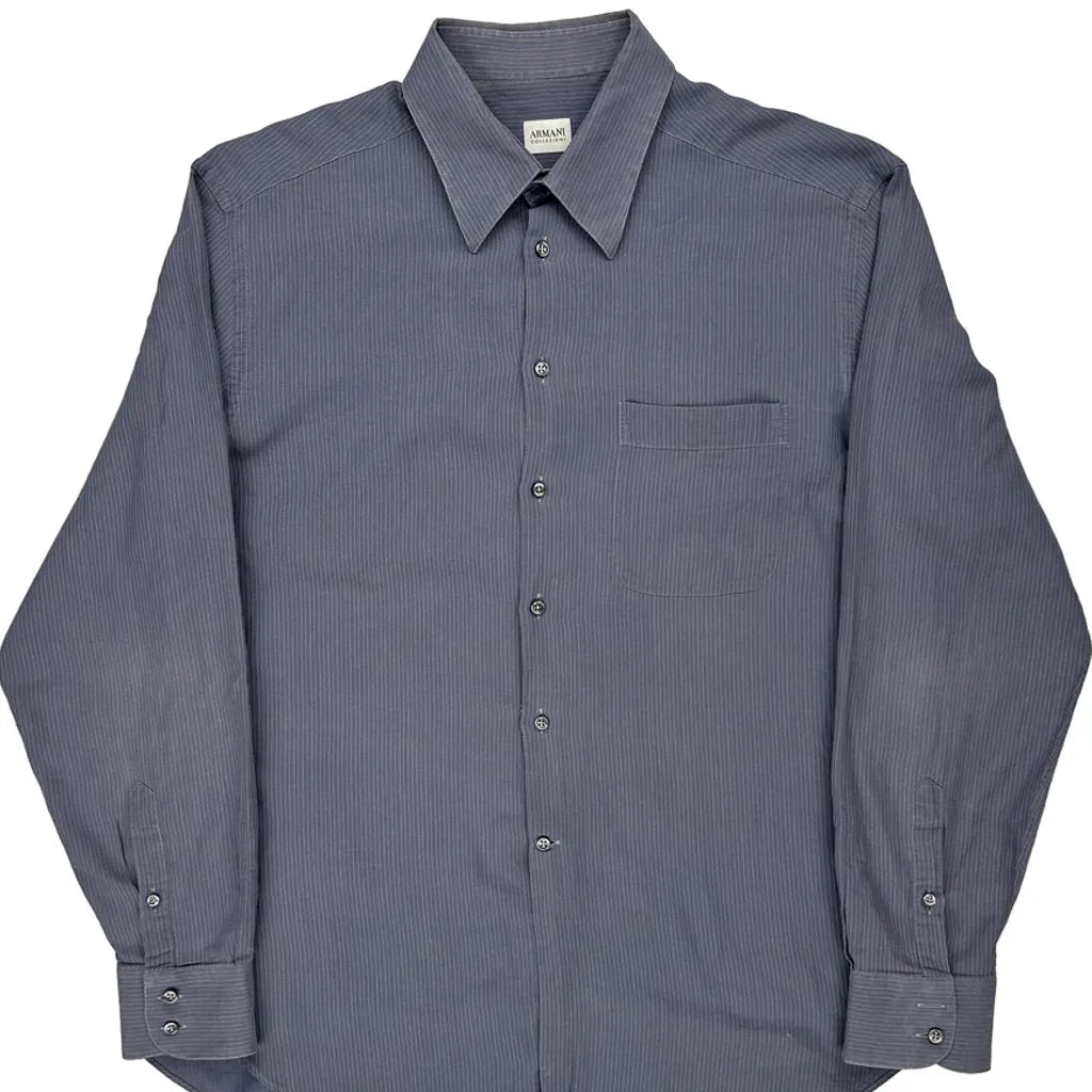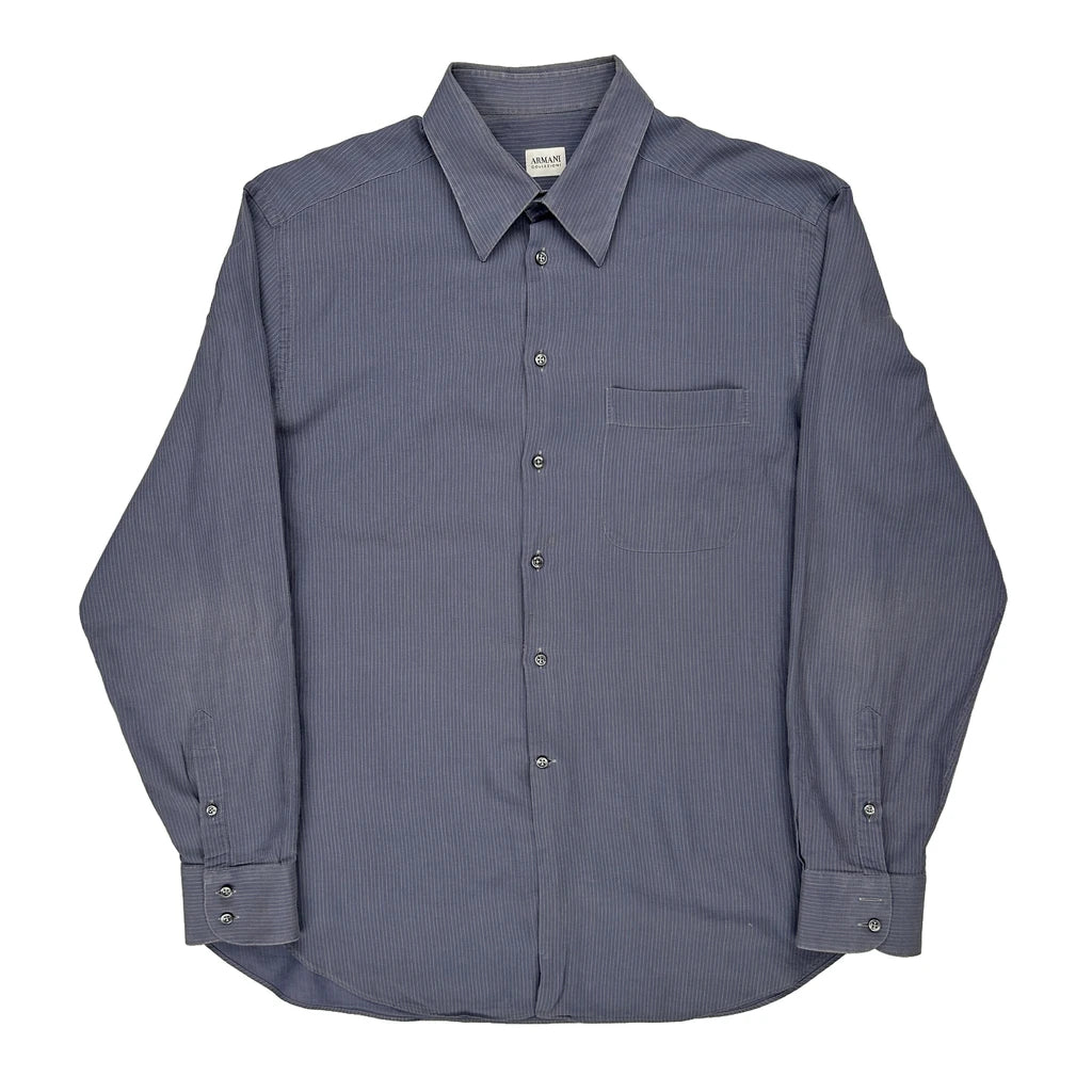 Armani Pinstripe Shirt - Large Blue Cotton