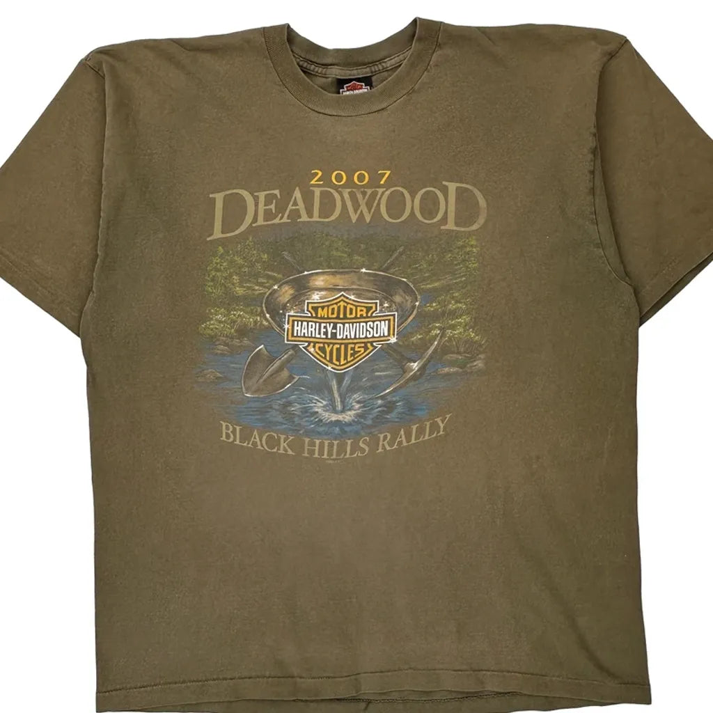 Black Hills Rally Harley Davidson Graphic T-Shirt - 2XL Brown Cotton
