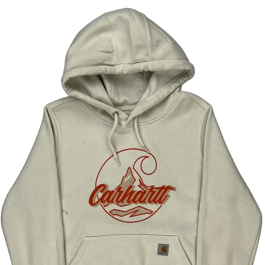 Carhartt Graphic Hoodie - Small Cream Cotton