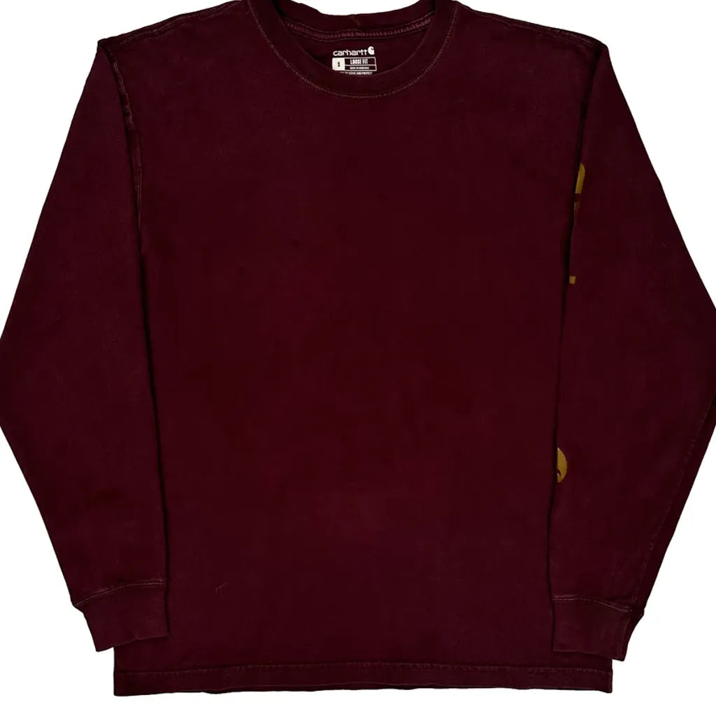 Carhartt Long Sleeve T-Shirt - Small Burgundy Cotton