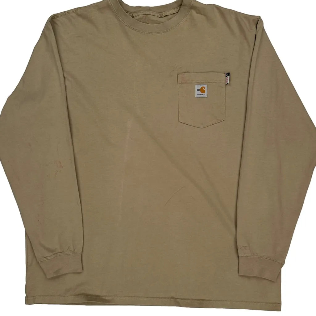 Carhartt Tall Long Sleeve T-Shirt - 2XL Khaki Cotton