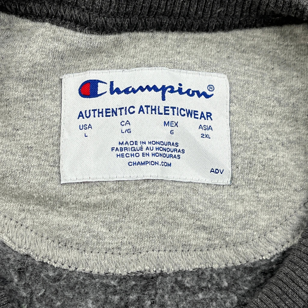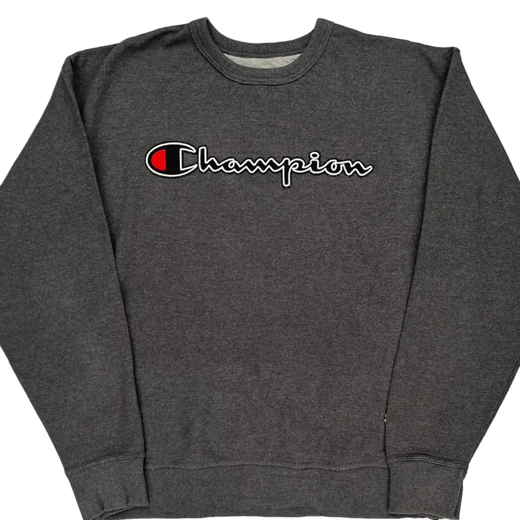 Champion Spellout Sweatshirt - Large Grey Cotton Blend