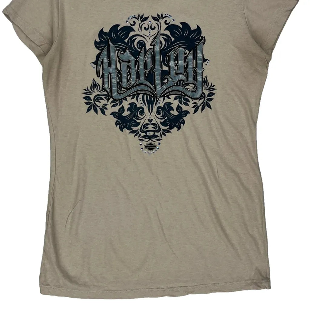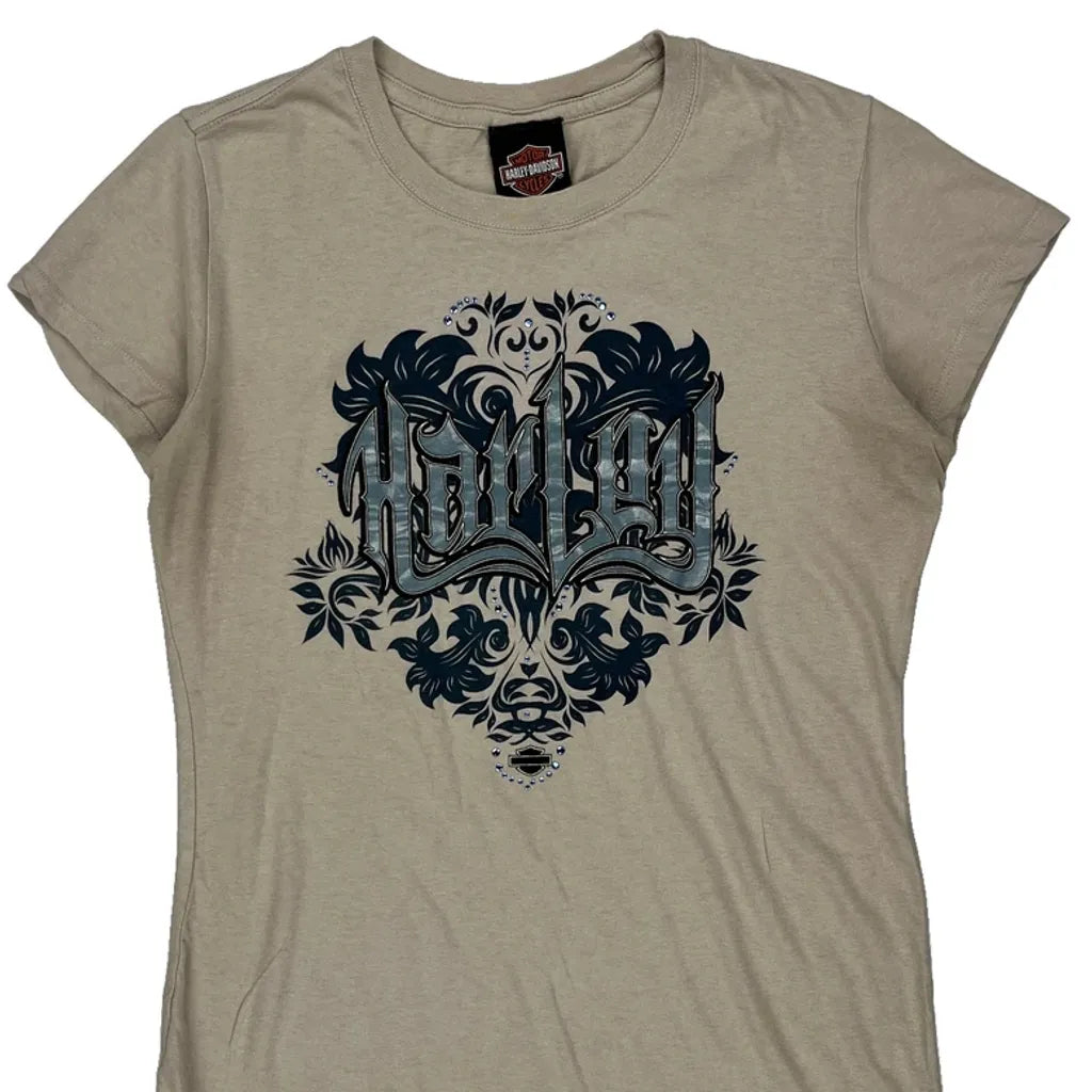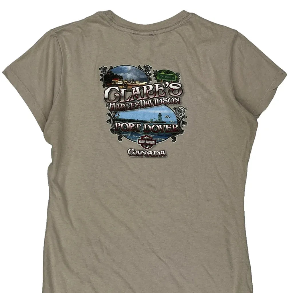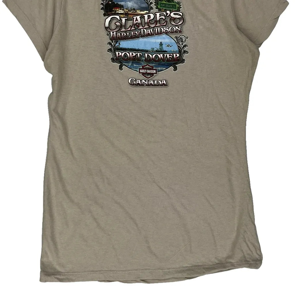 Clare'S Harley Davidson Port Dover Canada Harley Davidson Graphic T-Shirt - Large Beige Cotton
