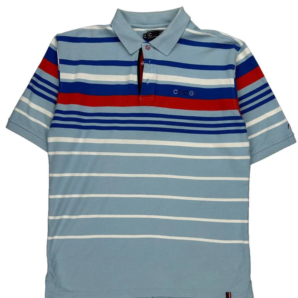 Coogi Striped Polo Shirt - XL Blue Cotton